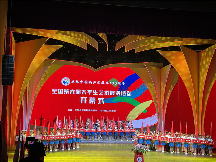 以“奋斗 创新 奉献”为主题的全国第六届大学生艺术展演于5月6日晚在四川省成都市开幕,来自全国200余所高校的8000多名师生汇聚一堂,参加三年一次的全国高校艺术盛会,我校选送的朗诵节目《登上地球之巅》代表山西省进行展演。