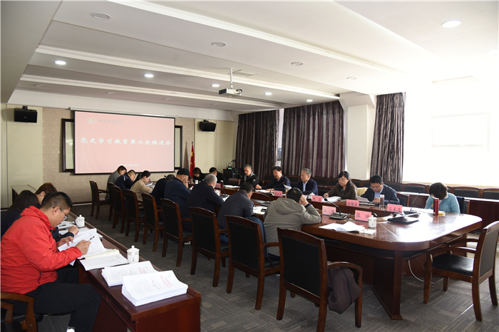 会议再次认真学习习近平总书记在党史学习教育动员大会上的重要讲话精神及上级和学校有关文件及会议精神,就落实中央、省委、省委教育工委和校党委通知、方案工作部署要求,全校抓紧抓严抓细抓实学习贯彻落实工作,进行具体工作推进部署安排。