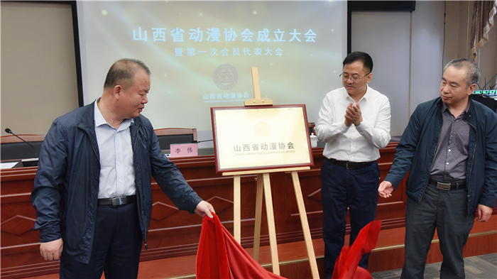 李伟、常兴元、薛建平共同为山西省动漫协会成立揭牌。