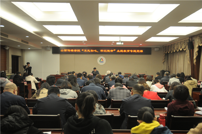 根据中央及省委“不忘初心、牢记使命”主题教育领导小组部署要求,按照学校主题教育实施方案安排,10月14日,党委书记王亦农为全校党员干部讲授了题为《以习近平新时代中国特色社会主义思想指引学校发展新征程》的专题党课。省委“不忘初心、牢记使命”主题教育第七巡回指导组组长、省政协人口资源环境委员会副主任杨波,巡回指导组成员、省学生助学贷款管理中心办公室主任刘梁、中国(太原)煤炭交易中心机关党委科员逯培锋出席。全体校领导、党支部书记、科级以上党员、副高职称以上党员参加。专题党课由党委副书记、院长李伟主持。