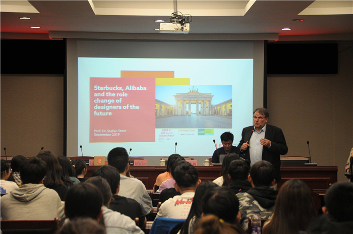 下午,Stefan Stein为我校师生于第一会议室作了题为《Starbucks Alibaba and the Role Change of Designers of the Future》的学术报告会。会上,Stefan Stein以星巴克、阿里巴巴、滴滴打车等企业为例,讲述数字化革命的到来对设计的影响以及未来设计师的生存之道,会场气氛热烈。