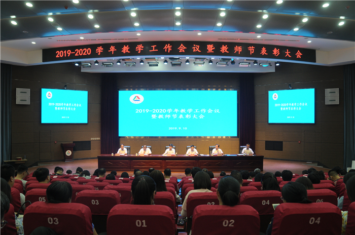 为庆祝全国第35个教师节,回顾总结2018-2019学年教学工作,表彰我校教育教学工作中涌现出来的优秀教职员工,9月10日,我校召开2019-2020学年教学工作会议暨教师节表彰大会。校领导王亦农、李伟、刘锐、张永德、武升平、郭卫东出席。全体教职工参加大会。大会由副院长郭卫东主持。