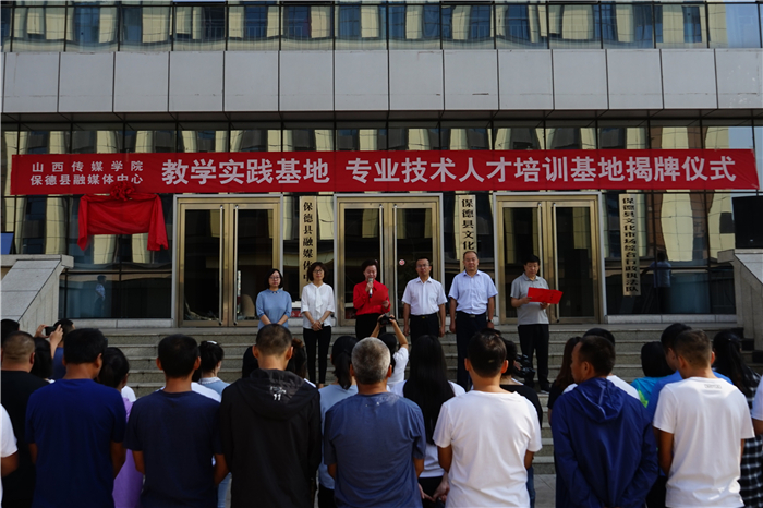 9月7日,我校与保德县融媒体中心在保德县举行教学实践基地和专业技术人才培训基地签约挂牌仪式。副院长郭卫东,新闻传播学院、继续教育部等部门负责人,保德县融媒体中心主任赵丹及保德县融媒体中心全体工作人员参加仪式。
