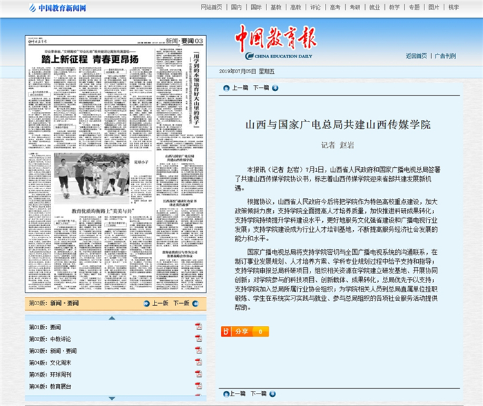 中国教育报——山西与国家广电总局共建山西传媒学院