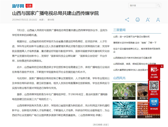 新华网——山西与国家广播电视总局共建山西传媒学院