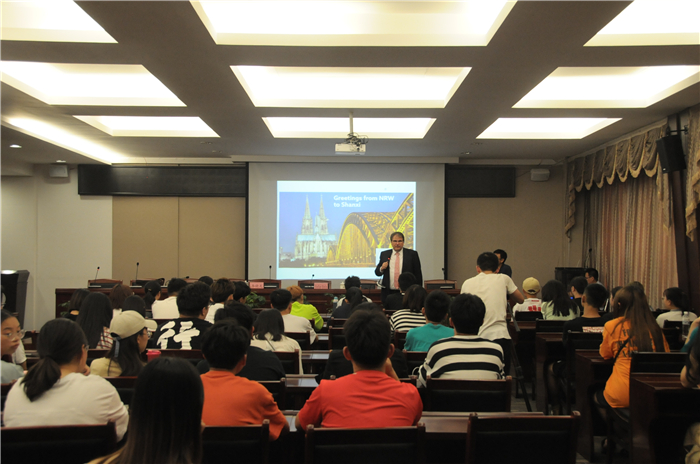 下午,Stefan Stein校长一行于第一会议室举行德国欧洲应用技术大学与我校合作项目宣讲会。会上,Stefan Stein校长介绍了学校概况以及签约项目的具体情况,并耐心地与学生交流、解答问题。