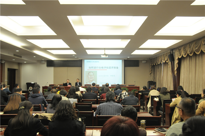 为推进我校本科教学工作合格评估迎评工作的顺利开展,5月9日,山东交通学院李景芝教授应邀来我校作题为《如何进行合格评估迎评准备》的专题报告。校领导王亦农、张永德、武升平、郭卫东、王红叶出席。各相关部门负责人、各院(系)部主任、分管教学副主任、教研室主任、教学秘书参加。报告会由副院长郭卫东主持。