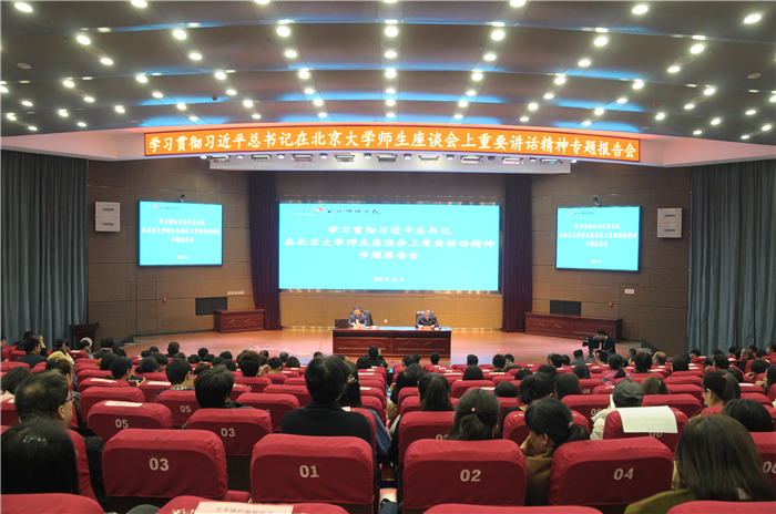为进一步引深学习贯彻落实习近平总书记在北京大学师生座谈会上的重要讲话精神,进一步推动全校师生切实用习近平总书记的重要讲话精神来武装头脑、指导实践,推动工作,4月3日,我校举行学习习近平总书记在北京大学师生座谈会上重要讲话精神专题报告会。校领导王亦农、李伟、刘锐、张永德、郭卫东出席,全体教职工、学生党员、学生干部参加。党委副书记刘锐主持报告会。北京大学化学与分子工程学院教授、博士生导师,北京大学前沿交叉学科研究院副院长,北大清华生命科学联合中心高级研究员陈鹏应邀作题为《高校教师践行习近平思想之体会》的专题报告。