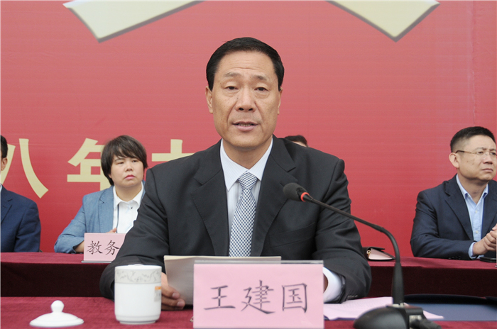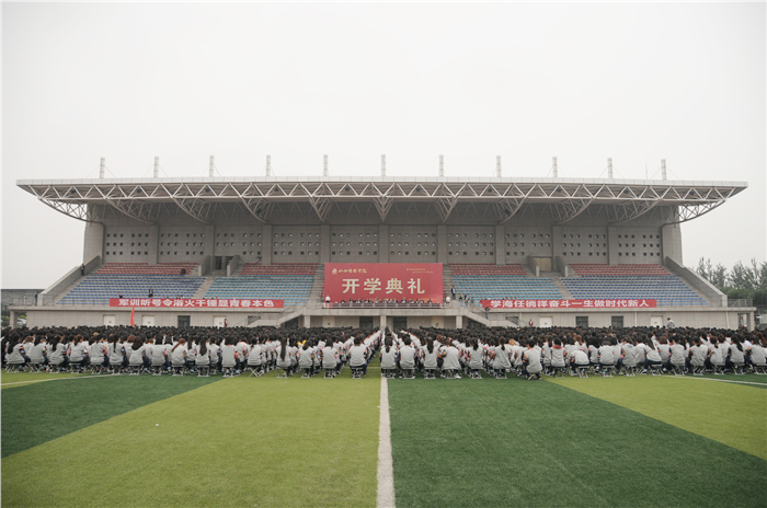 院长王建国发表了热情洋溢的讲话,他首先代表学校对承训部队官兵表示诚心的问候和感谢,对来自全国各地的同学们表示热烈欢迎。他讲到,今年是学校建校35周年暨转制升本5周年。35年来,学校实现了三次办学层次的历史性飞跃,成为了一所特色鲜明、充满活力、享誉业内、前景宽广的行业大学,各项事业不断开创出崭新局面,希望全体新生与母校一起携手努力,为将我校建成特色鲜明行业一流的传媒类院校共同奋斗。他就全体新生如何开始大学生活提出四点建议:一是要乐于管理时间,勤于思考学习。要尽早规划自己的学习生涯,勤奋自律、合理安排。要在大学珍贵的时光里,遵循学习的规律,掌握学习的方法,提升学习的能力,收获学习的乐趣;二是要善于掌握情绪,善于理性面对。要树立正确的世界观、价值观和人生观,要善于做情绪的调节师、心情的美容师,勇于接纳自己和生活中的不完美,不钻牛角尖,不走死胡同,学会自我克制和理性表达;三是要勇于大胆尝试,敢于开拓创新。希望同学们抓住机遇、勇于尝试,勤于实践、学以致用,积极走出第一课堂,多动手、多体验,多思考、多分享,尽早形成独立之精神、自由之思想,让灵感来源和思想火花汇聚成真正的核心竞争力,成就卓越人生。四是要善于培育情怀,善养浩然之气。作为山传学子,要孕育家国为先、昂扬自信、坚韧刚毅的博大情怀,弘扬优良传统,担负起时代责任和家国使命,要自信地绽放青春,自信地迎接挑战,将来自信地引领未来,快乐地追求人生理想。同时,希望同学们涵养正气、静气和雅气,以成浩然之气。