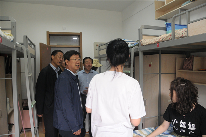 王亦农、王建国仔细向工作人员详细了解了新生报到、住宿安排、学费缴纳以及后勤服务等工作落实情况,嘱咐大家要本着服务新生的理念,发挥“新生报到系统”的优势,热情周到地做好迎新工作,让新生、家长进校第一天就能感受到学校家一般的温暖和良好的育人氛围。之后,王亦农、王建国、张永德在相关部门负责人的陪同下深入到2018级新生宿舍看望慰问新生及家长,详细询问同学们哪个专业、来自哪里、饮食上是否适应、生活上能否习惯、入校后的感受等情况,并嘱咐同学们有什么问题及时和辅导员和公寓的工作人员沟通,希望他们尽快熟悉山传,感受山传、融入山传、适应大学生活,为实现自己的“传媒梦”努力学习。