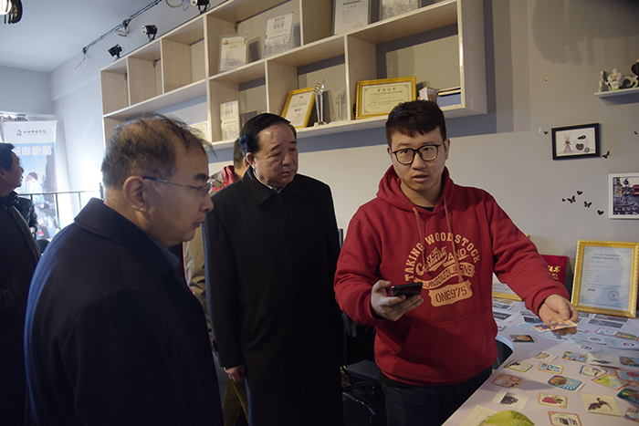 会前,与会人员在王建国院长的陪同下参观了学院文化科技园、演播中心、广告系“一生一品”展厅和认知实验室。