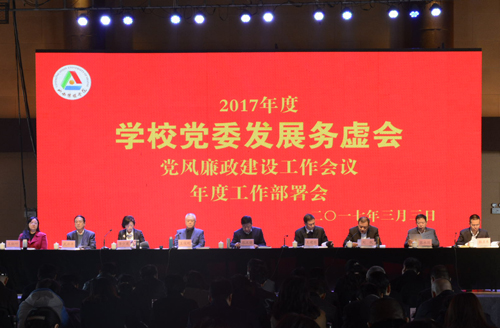 会上,刘锐副书记安排部署了党委年度重点工作,李少英书记安排部署了党风廉政建设和反腐败重点工作,郭卫东副校长通报了申硕工作情况。各部门负责人认领了《2017年度部门工作目标责任书》、《2017年度党风廉政建设目标责任书》和《2017年度安全稳定目标责任书》。