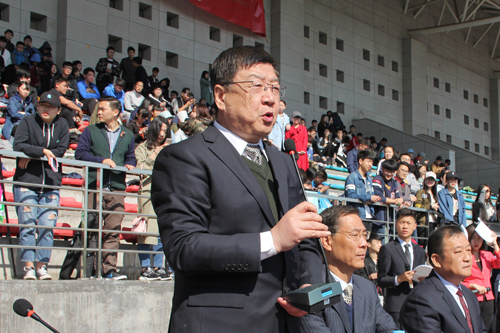刘锐副书记致开幕词。他代表学校对运动会的顺利召开表示热烈祝贺,并希望全校师生把体育运动当作一种习惯,人人拥有健康的体魄、共同享受精彩的人生,以本届运动会所体现出来的精神为引领,在校党委、校行政的坚强领导下,奋力加快特色鲜明、行业一流的高水平传媒院校的建设步伐,奋勇刷新出高水平与高效益办学的新纪录、新成绩、新突破。最后,刘锐副书记预祝运动员取得优异成绩,预祝本届运动会圆满成功。