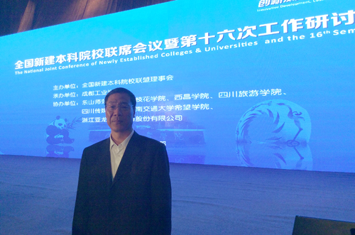 10月29日-30日,校长王建国应邀出席在成都举行的全国新建本科院校联席会议暨第十六次工作研讨会。来自全国29个省、市、自治区220余所新建本科院校的630余名代表和12家媒体代表出席了此次研讨会。此次论坛以“创新发展、协同育人、质量保障”为主题,通过主题报告、专题报告、高端对话等形式全方位多层面探讨了中国新建本科院校的发展之路。参会高校共同倡议,一致达成“成都共识”,各高校郑重承诺“愿意成为转型发展的主角,愿意成为新建本科院校向应用型转变系列改革的积极倡导者、主动践行者和责任担当者,在不同地区、不同领域探索适合自身发展的转型之路,用行动抒写转型发展新篇章”。