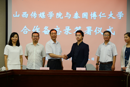 6月28日,我校与泰国博仁大学合作备忘录签署仪式在文华楼第一会议室举行。校长王建国、泰国博仁大学社会科学与传媒国际学院院长Howell GU博士出席,我校外事办和教务处主要负责人参加。