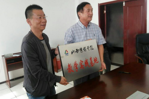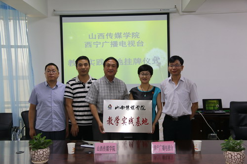 校武升平副院长代表学校与西宁广播电视台赵淑兰台长签订共建教学实践基地协议,并授牌