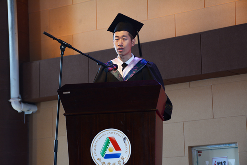 毕业生代表芦鹏宇同学发言