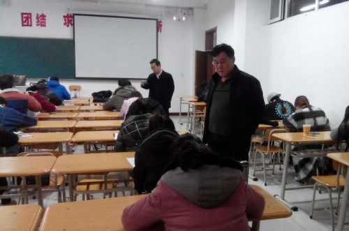 1月2日,山传的学子们迎来了本学期期末考试周的第一场考试。为了严肃考风考纪,加强考试管理,校领导王新塘在教务处长郭卫东的陪同下深入考场巡视、检查期末考试工作开展情况。