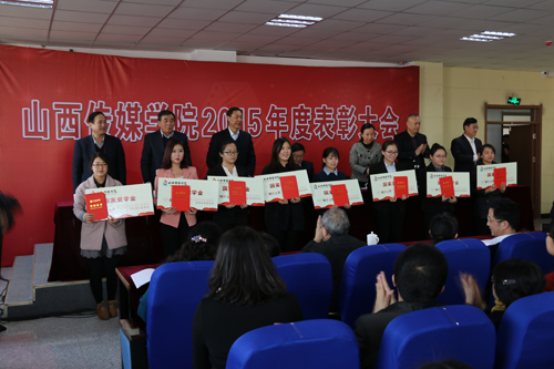 之后,大会对2015年度获得省级以上荣誉称号的先进个人、2014-2015学年国家奖学金获得者、“中广电”奖教金获得者、“中广电”奖学金获得者、教学突出贡献奖、科研成果获奖代表、创作成果国际级获奖代表和青年教师创作大赛获奖代表进行了表彰。