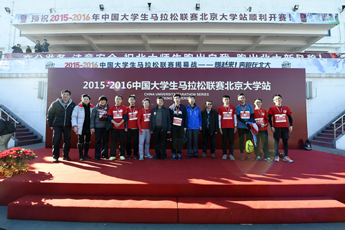 12月4日,2015-2016中国大学生马拉松联赛在北京大学开赛。我院副院长王新塘应邀参加比赛开幕式,并与北京大学副校长高松、中国大学生体育协会专职副主席薛彦青、贵人鸟股份有限公司董事长林天福、虎扑体育董事长、动域资本管理合伙人程杭等领导和嘉宾为比赛发令鸣枪。