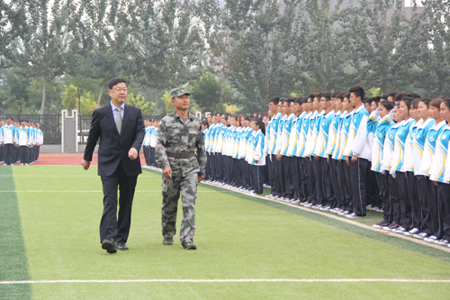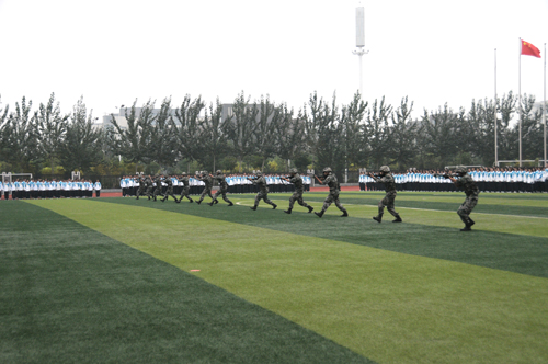 9月28日,学院在风雨操场举行2015级新生军训汇报表演暨总结表彰大会。党委书记张汉静、院长王建国、承训部队工化营教导员赵伟少校、党委副书记王俊刚、纪委书记梁云阶出席,副院长王新塘主持大会。学院办公室、教务处、学生处、基础部、思政部、公体部负责人,各系主任、党总支书记,承担军训任务的部队官兵和2015级全体新生参加。王建国院长代表学院向承训部队赠送了锦旗,感谢承训部队全体教官克服困难、努力搞好军训工作。