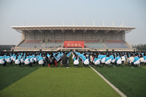 9月15日上午,学院在风雨操场举行2015级新生开学典礼暨军训动员大会。院长王建国、承训部队教导员赵伟、党委副书记王俊刚、纪委书记梁云阶、副院长王新塘及学院办公室、教务处、学生处、总务处负责人、各系主要负责人、基础部、思政部、公体部主任和承担军训任务的部队官兵、2015级全体新生。开学典礼由副院长武升平主持。