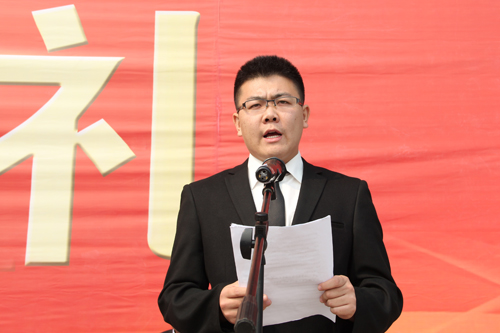 承训部队教导员赵伟代表军训教官讲话,要求新生们发扬不怕苦、不怕累的精神,锻炼身体,磨练意志,完成军训任务。