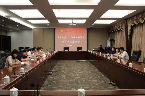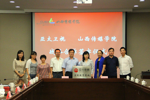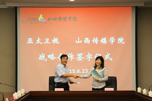 6月23日上午,我院与香港亚太卫视建立战略合作关系签约仪式在学院第一会议室举行。亚太卫视副台长李和英、亚太卫视节目中心主任廖宏、亚太卫视频道策划张琳,学院副院长王新塘及学院办公室、教务处、科研处、学生处、制作系负责人参加签约仪式。