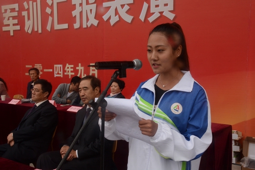 军训汇报表演中,2014级新生从迎校旗、阅兵式、分列式、队列表演、军体拳表演、学生应急防护自救表演、教官表演、唱军歌、送校旗等9个部分,汇报了此次的军训成果,表演高潮迭起,现场不时响起热烈掌声。