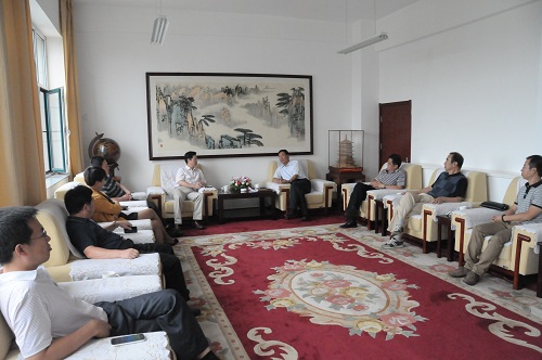 7月22日,江苏省科学技术馆馆长汪立祥一行四人来院交流。院长王建国、副院长王新塘、正院级调研员朱晓明及教务处主要负责人、主持与播音教研室负责人参加。
