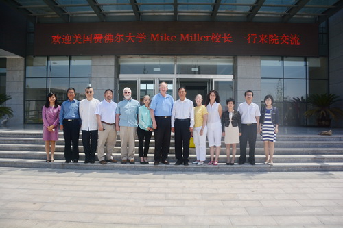 5月26日,美国费佛尔大学校长Mike Miller一行六人来院交流。我院院长王建国及学院办公室、教务处、科研处、影视制作中心、艺术设计、动画系等部门负责人参加。