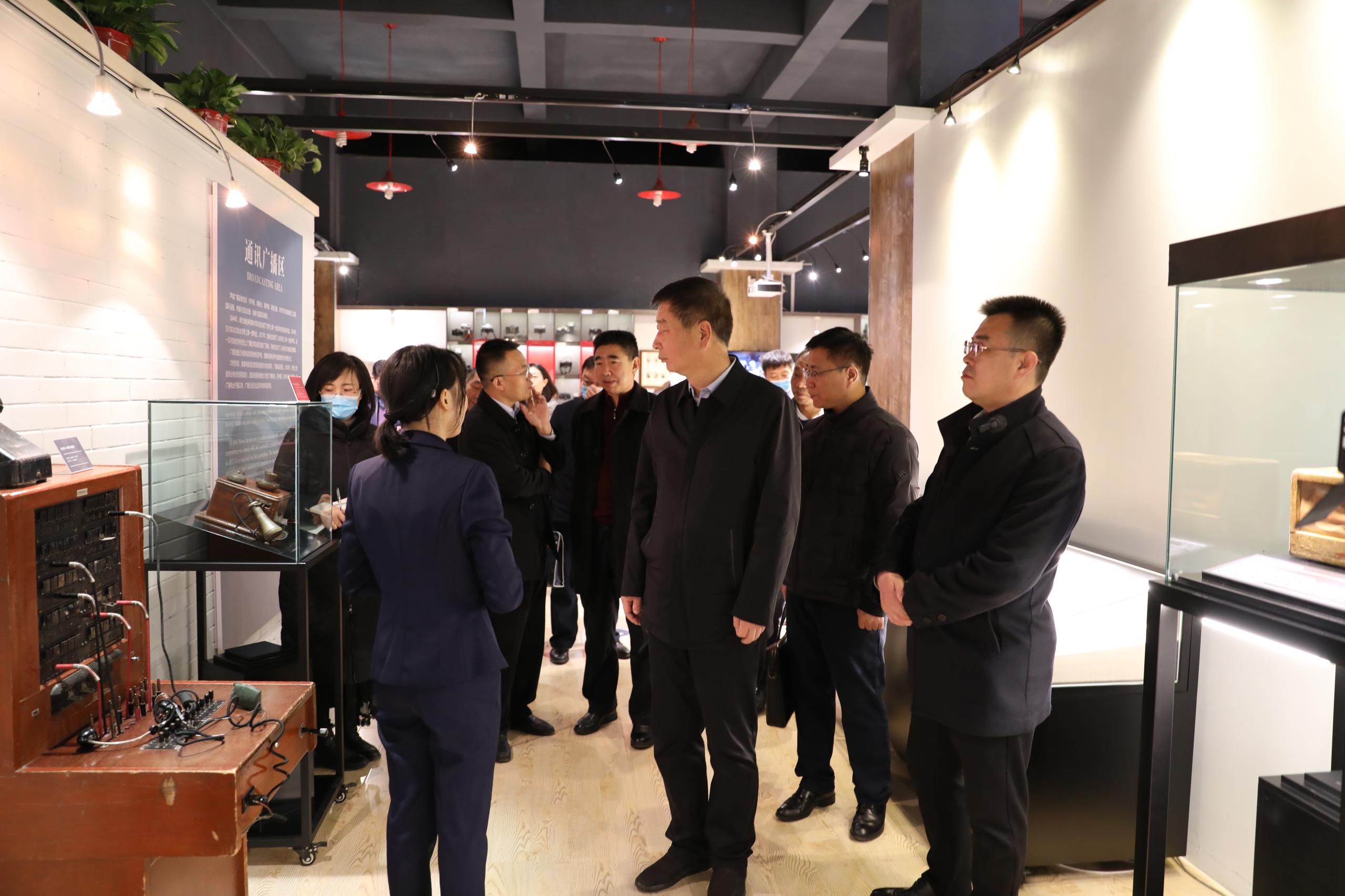 集中交流结束后,郭卫东陪同张长青、姜俊兵一行实地考察了演播实训中心、认知实验室、“一人一品”作品展和校史馆,双方相关部门负责人进行了对口交流。