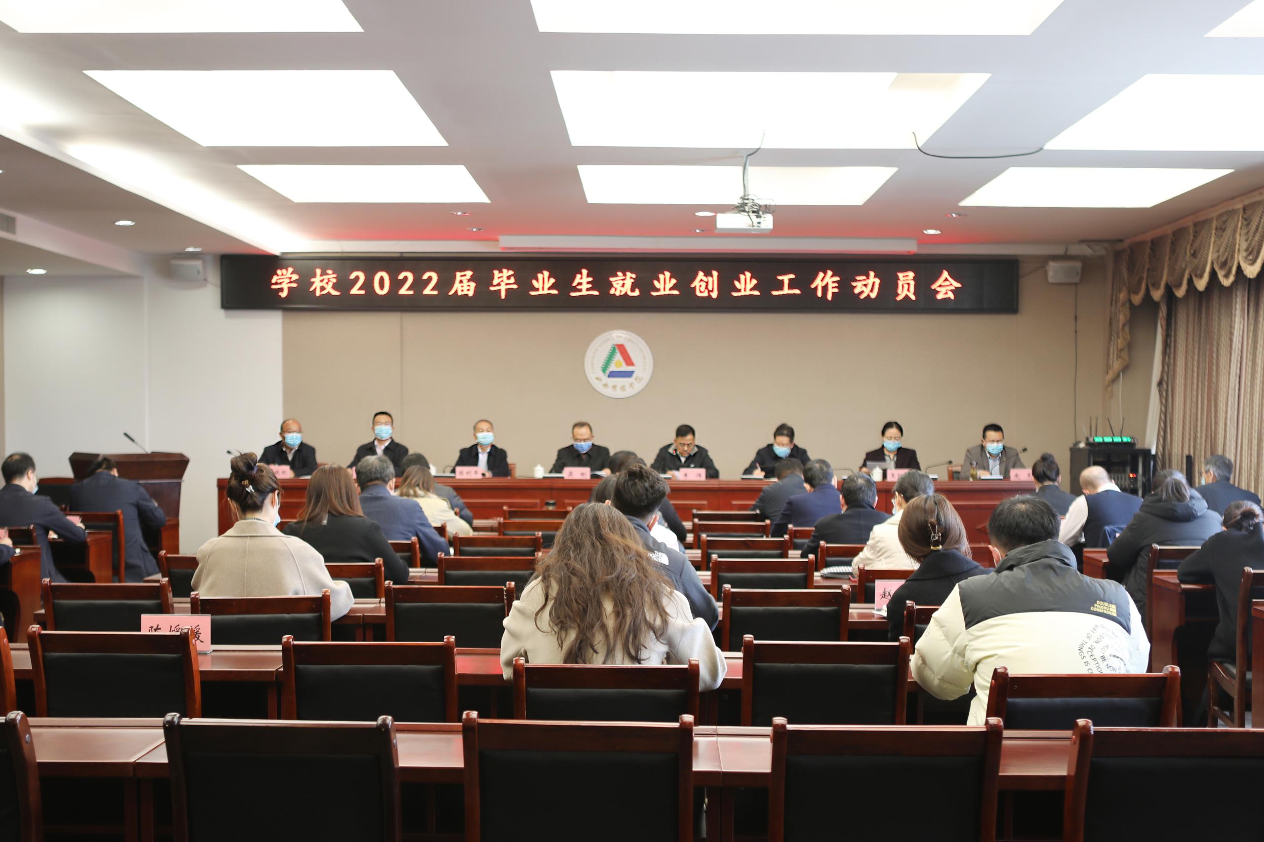 为贯彻落实习近平总书记系列重要讲话和批示指示精神,落实国务院、教育部、山西省教育厅部署要求,应对疫情做好2022届毕业生就业创业工作,实现毕业生“稳就业”目标,3月17日下午,我校召开2022届毕业生就业创业工作动员会。校领导吴刚、李伟、陈利平、郭文平、郭卫东、王红叶、管晓刚、庞亮出席会议。各相关部门负责人、各二级学院负责人、就业专员、毕业班辅导员参加会议。校长李伟主持会议。