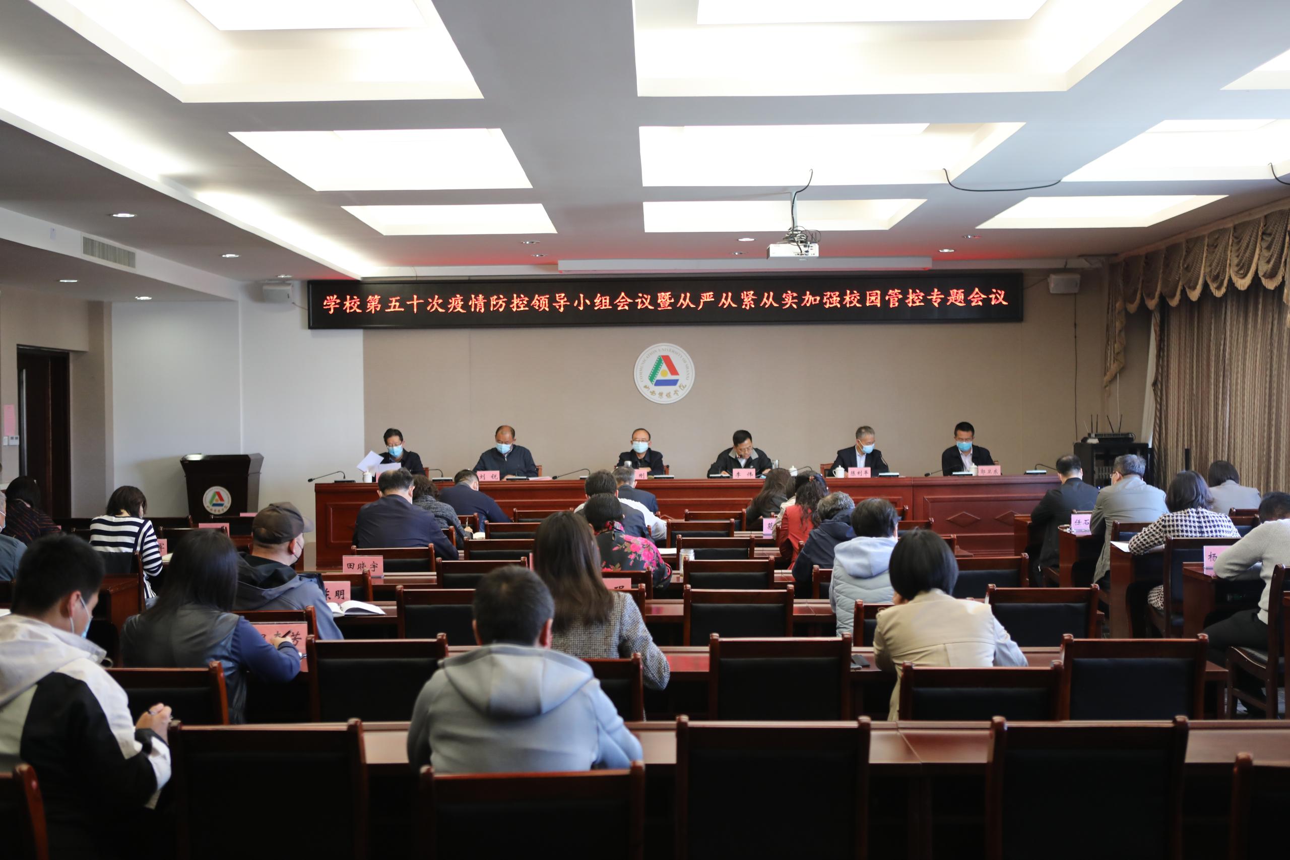 4月7日下午,学校召开第五十次疫情防控领导小组会议暨从严从紧从实加强校园管控专题会议,分析研判当前疫情形势,安排部署校园管控工作。在校校领导,各二级学院党总支书记、院长或二级学院主持(负责)工作的党政负责人,各单位各部门主要负责人参加了会议,会议由党委副书记、校长李伟主持。