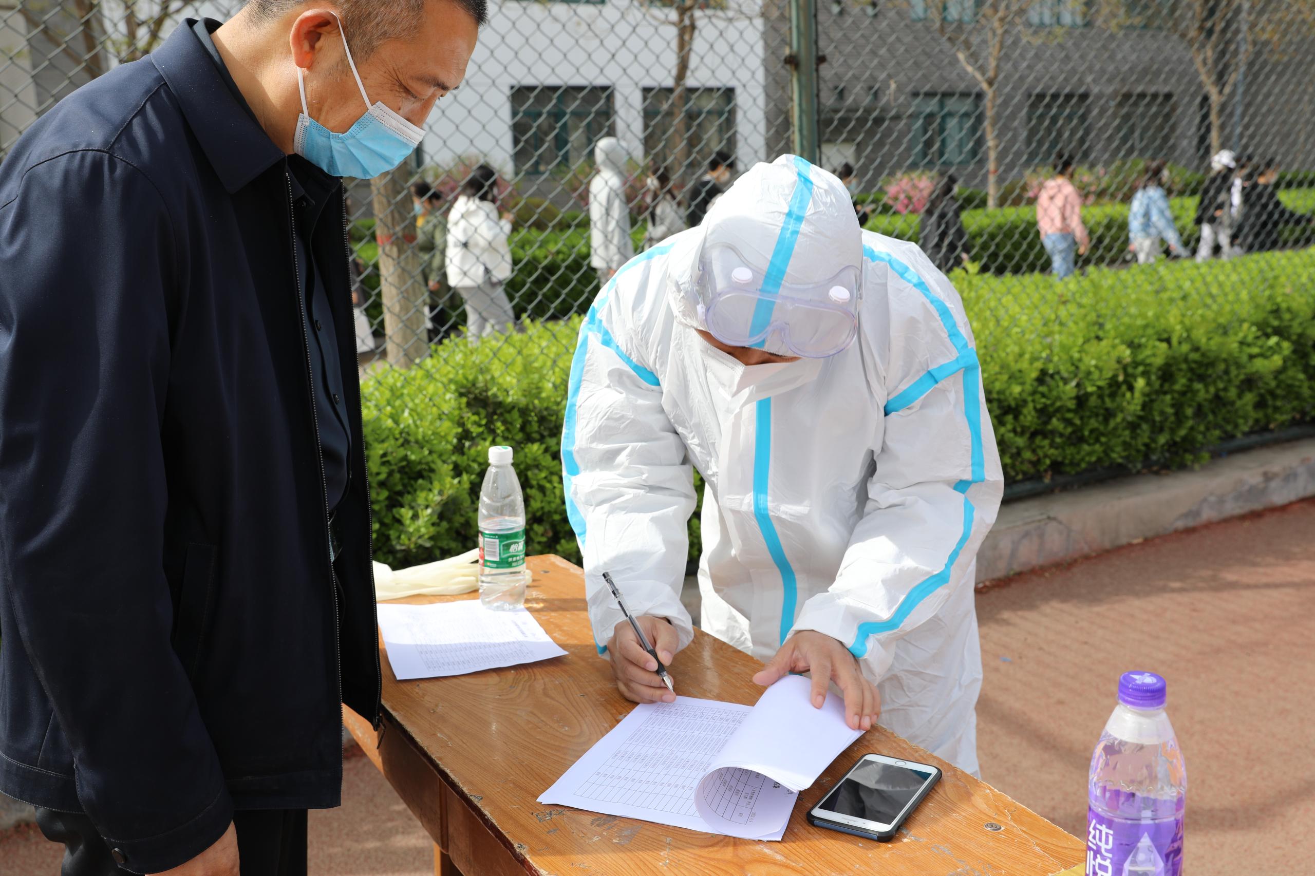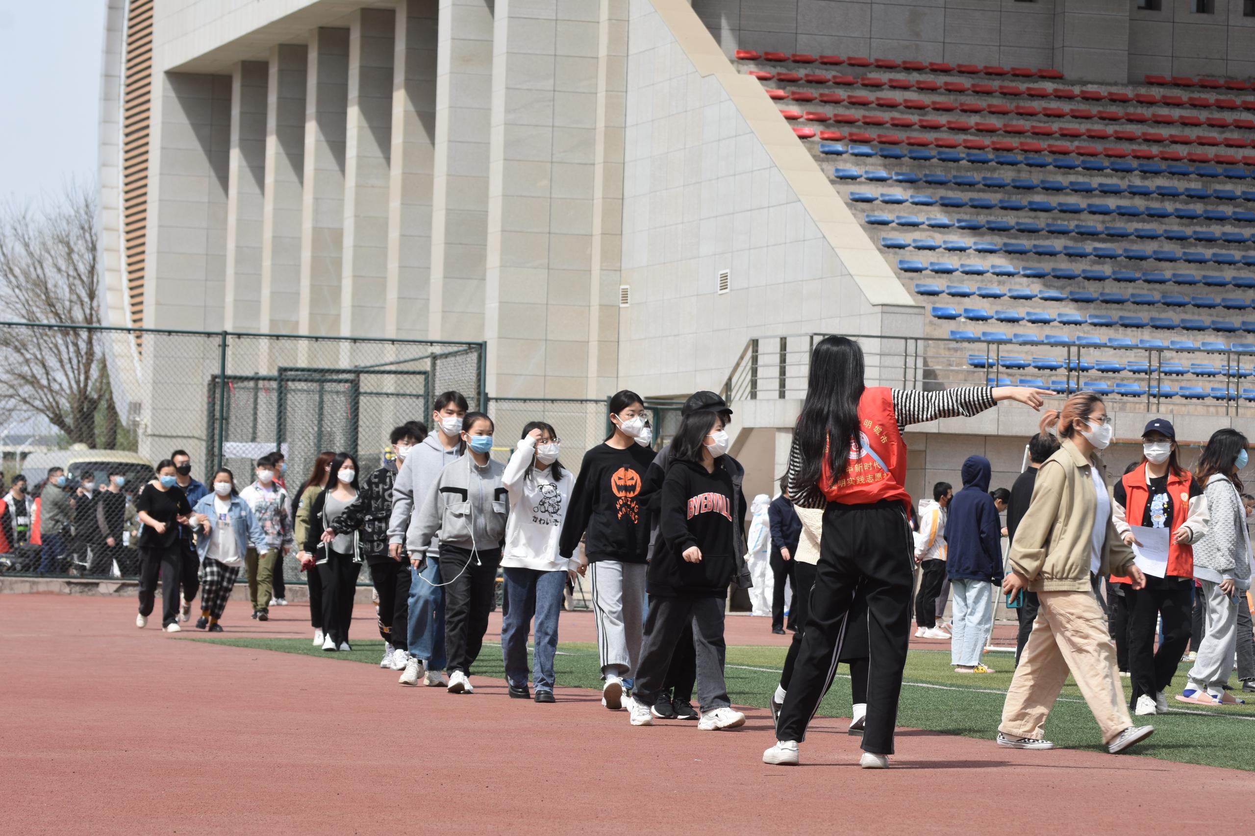 演练现场,按照功能划分为等候区、测温区、信息采集区、标本采样区和临时隔离区。为保障演练现场秩序和人员安全,避免拥堵和发生意外,我校在多个关键点安排志愿者,提醒参检人员佩戴口罩,提前打开参检二维码、健康码。演练过程中,师生自觉遵守演练规定和防控规定,各部门相互配合协调,现场间隔有度,秩序井然。