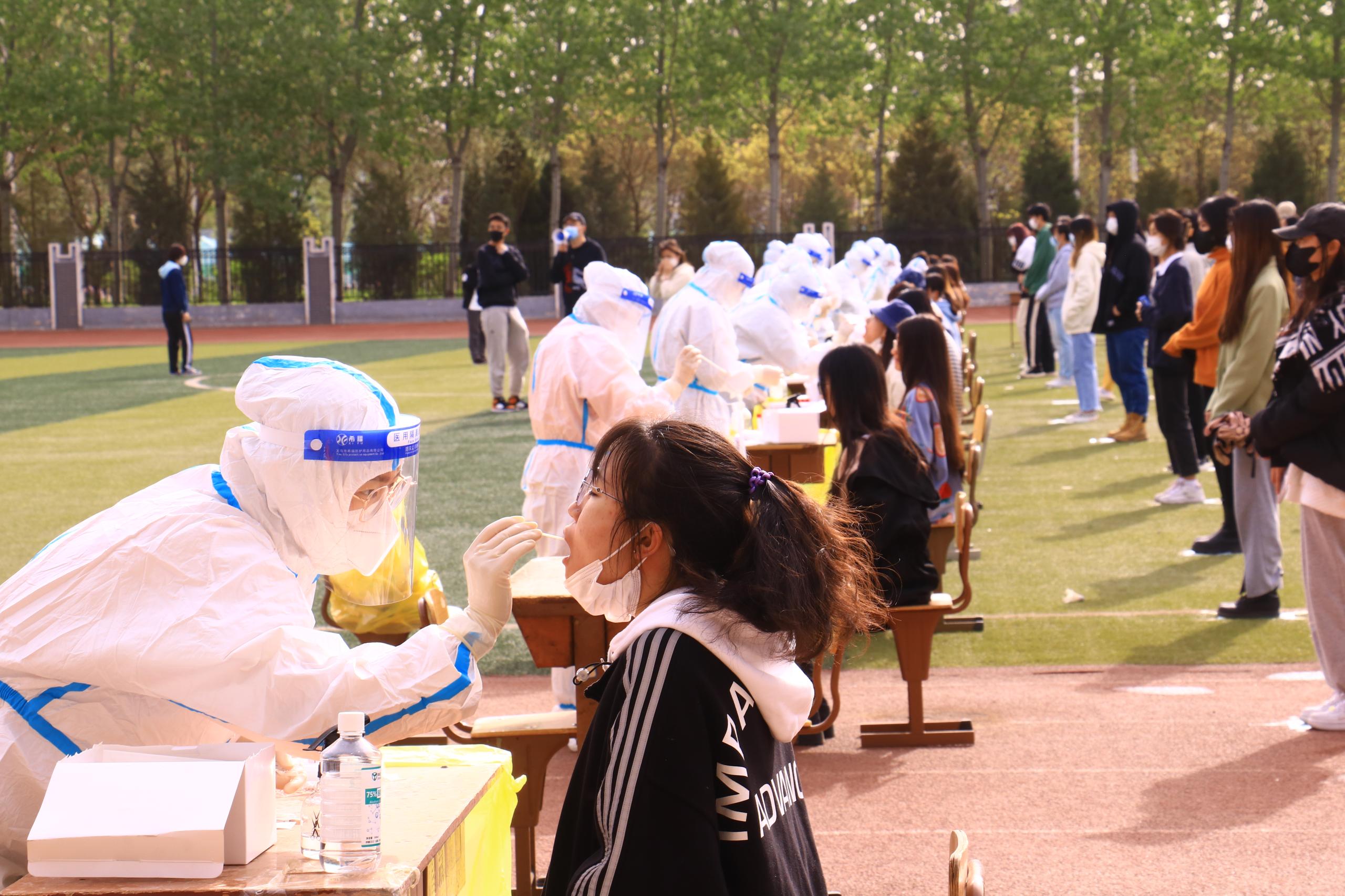 为进一步加强学校疫情防控工作,提升应急处置能力,切实保障广大师生的身体健康和校园安全,4月12日,我校在风雨操场开展全员核酸检测应急演练。