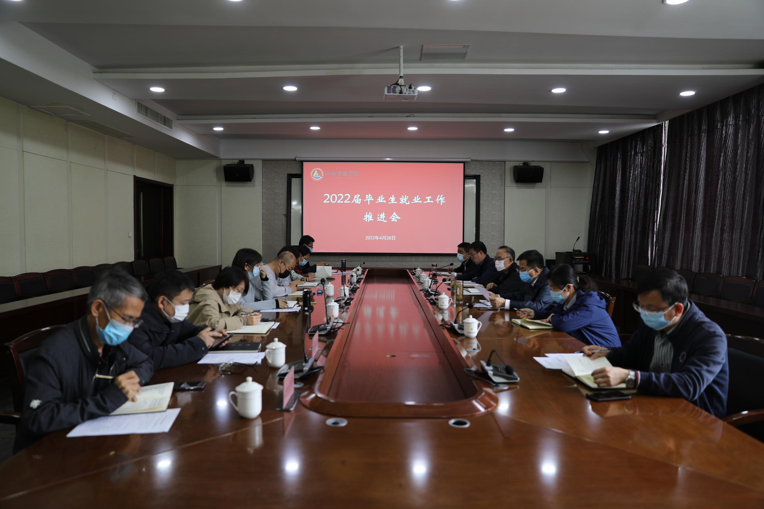 4月28日上午,我校召开2022届毕业生就业工作推进会。校党委书记吴刚、校长李伟出席会议并讲话,各二级学院党总支书记、副书记及教务部、校团委等部门负责人参加了会议,会议由学生部副部长李鹏主持。