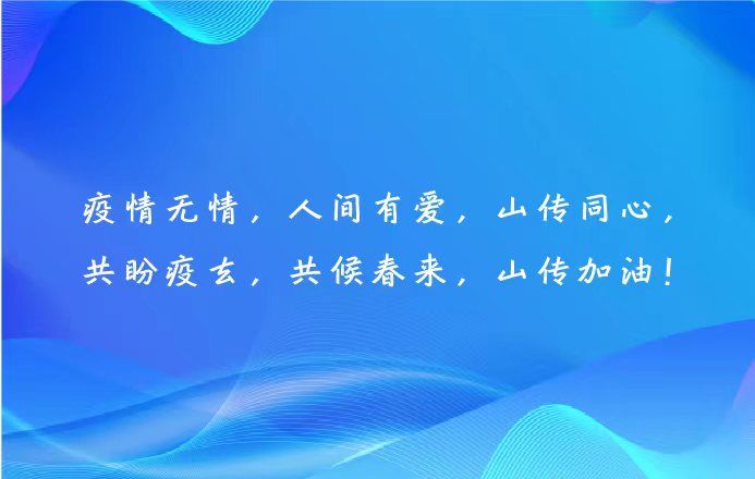 “疫情无情,人间有爱,山传同心,共盼疫去,共候春来,山传加油!”爱心卡片书写了学校心系学子、同心战疫的决心。在这个特殊时期,这份暖心礼包不仅承载了学校对学生们的关怀,还传达了学校坚持为师生办实事的决心。