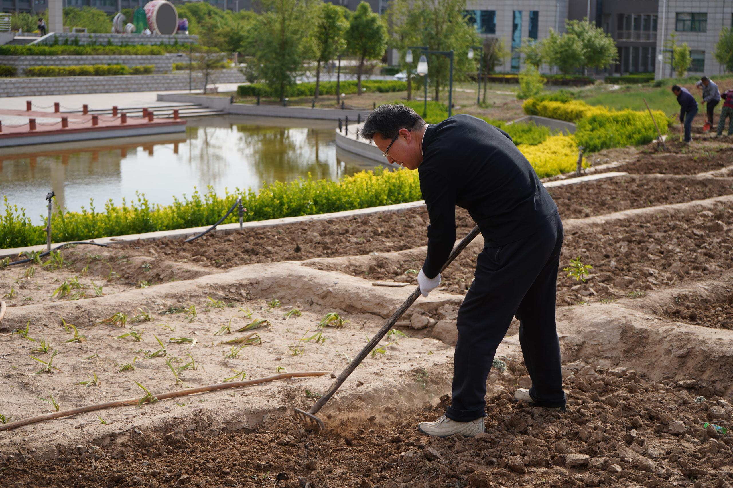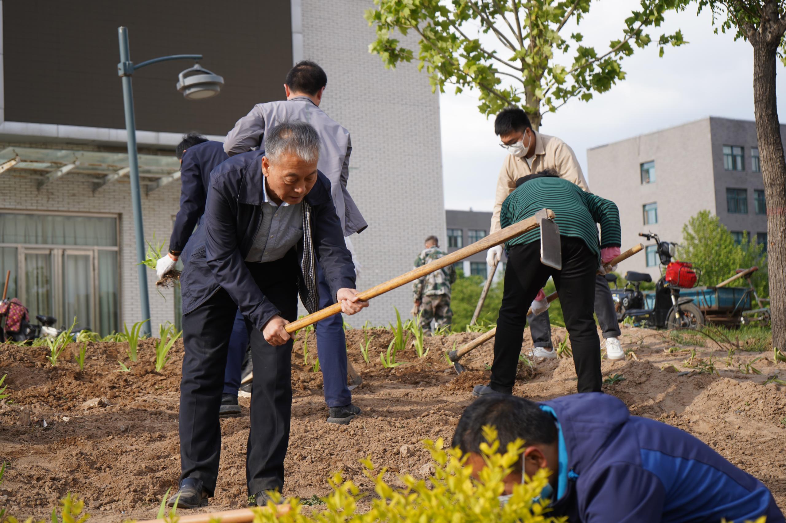 为践行习近平总书记“让劳动光荣、创造伟大成为铿锵的时代强音”的号召,强化教职工主人翁意识和责任意识,形成人人为校、人人治校的良好氛围,5月2日下午,学校全体在校校领导带队,组织全体机关职工开展义务劳动,种植花草,美化校园。