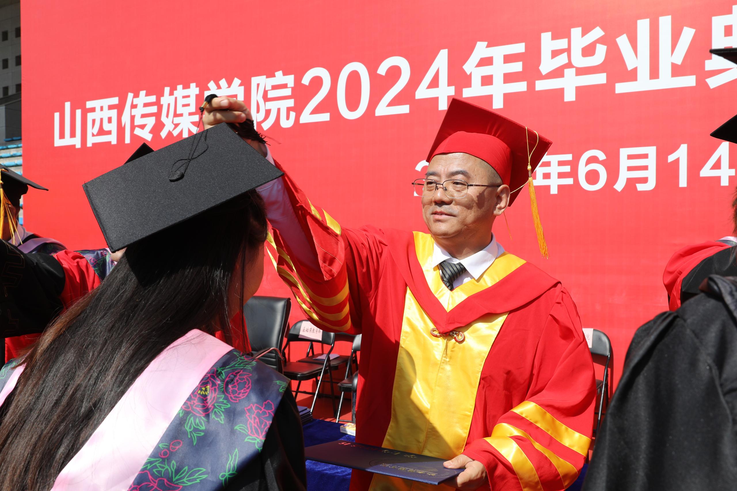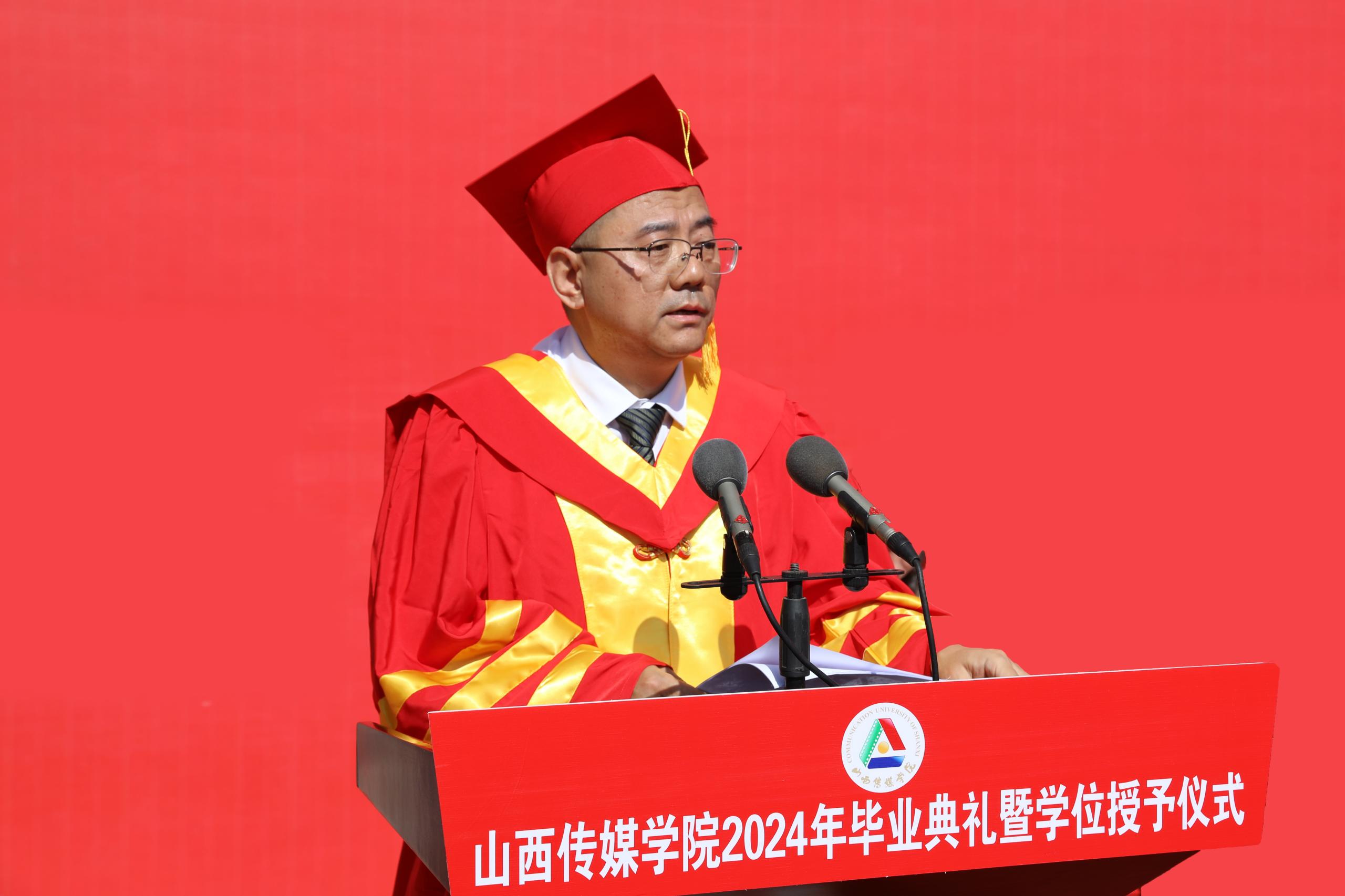 山河不负追梦人,拼搏永远正青春。6月14日上午,山西传媒学院2024年毕业典礼暨学位授予仪式在风雨操场举行。校领导吴刚、李伟、刘锐、郭文平、郭卫东及各二级学院院长出席典礼,学校各部门负责人、各二级学院班子成员、教职工代表、全体毕业班辅导员及全体在校毕业生参加。党委委员、副校长郭卫东主持典礼。