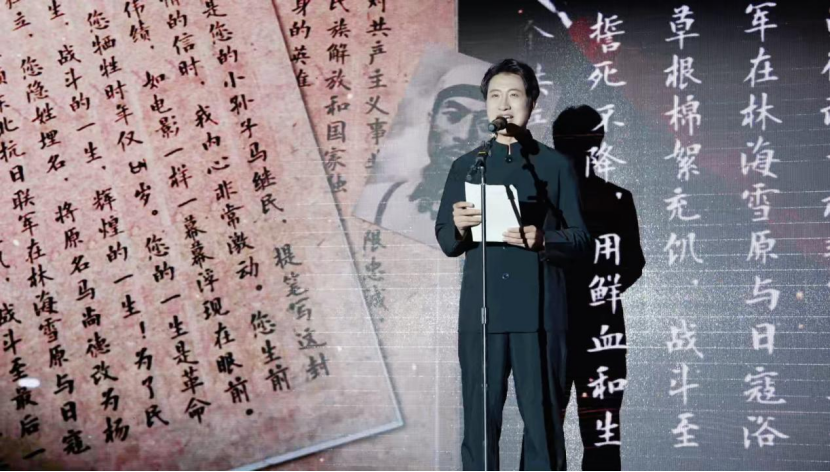 通过姜震、黄子欣、崔朔深情诵读红色家书:《马继民致杨靖宇的信》《赵一曼致宁儿的信》《左权致志兰的信》,为现场访谈抗战英雄后代杨靖宇之孙马继民、赵一曼的孙女陈红、左权的外孙沙峰拉开了序幕。一封封家书、承载家国情怀,一声声嘱托、跨越百年时空,从家书出发,缅怀革命先辈、传承红色精神。