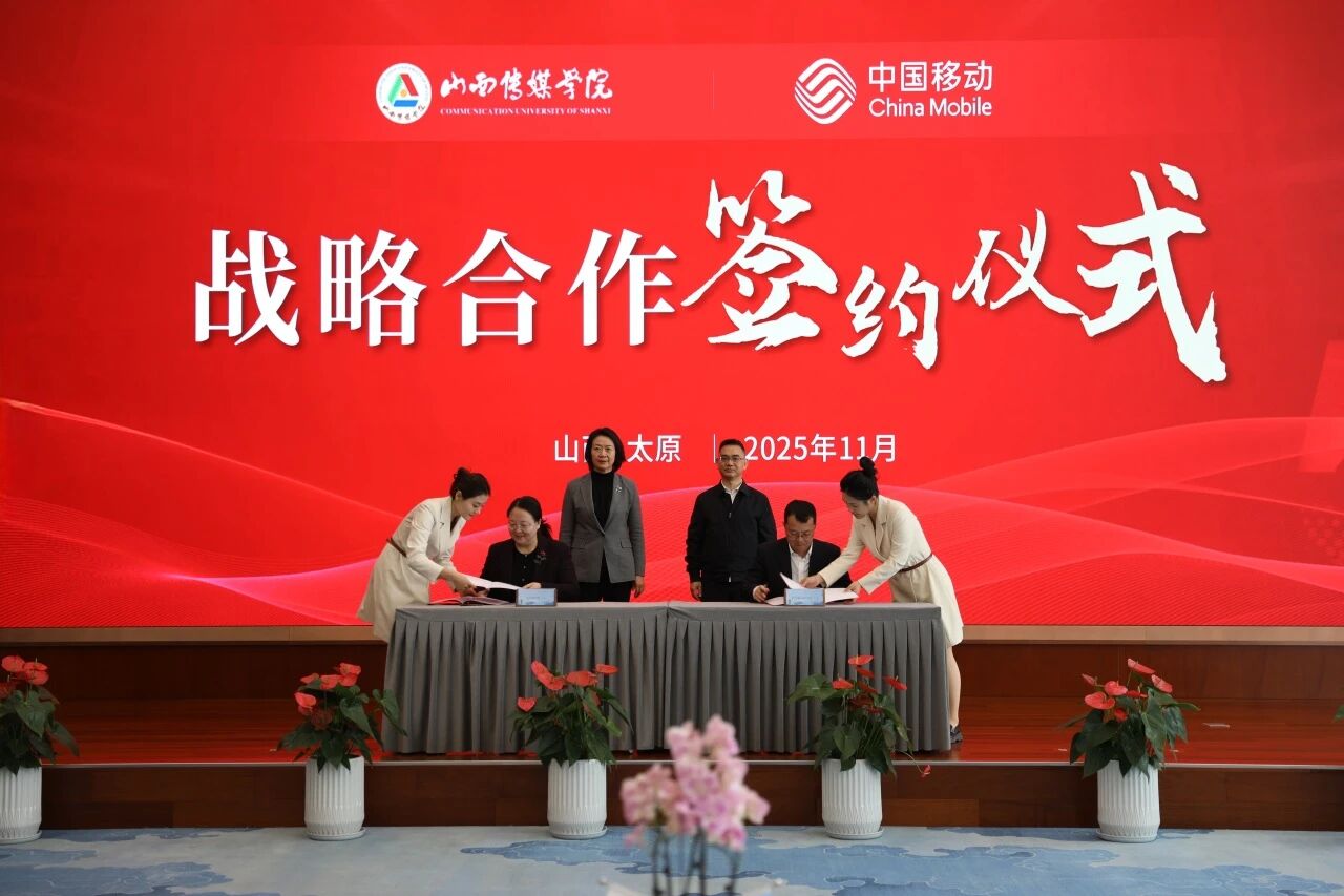 11月20日,我校与中国移动通信集团山西有限公司在中国移动(太原)智算中心签署战略合作协议,双方将围绕微短剧创作、数字内容生产、数智校园建设等领域开展深度合作,共同推进山西文化强省建设。校党委书记王铁梅,党委副书记、校长李伟,党委副书记、副校长周建新,中国移动山西公司党委书记、董事长、总经理廖建,副总经理田志勇、袁晓锋等出席签约仪式。副校长王红叶、中国移动山西公司副总经理袁晓锋代表双方签约。