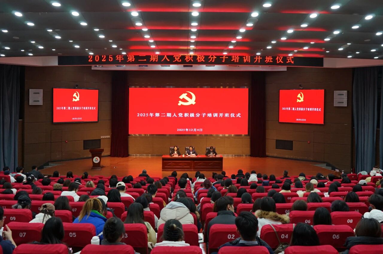 为学习贯彻习近平新时代中国特色社会主义思想和党的二十大及二十届二中、三中、四中全会精神,深入落实新时代党的建设总要求和新时代党的组织路线,做好新时代党员发展和教育工作,按照校党委安排部署,12月4日晚,2025年第二期入党积极分子培训班开班仪式暨开班专题党课在图书馆会议中心举行。党委副书记、副校长周建新出席并讲授专题党课,党委委员、组织部部长李霞作开班动员讲话,各党总支书记及副书记、党校教师、组织员本次开班仪式。党委组织部副部长张映主持,本期入党积极分子全体成员参加。