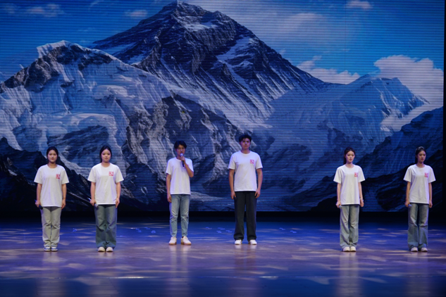 作为传媒人才培养的重要基地,我校学生在此次展演中全情投入、表现卓越。播音主持学院徐嘉钰、张珂嘉、李子祺、王慕希四名学生担任主持,全程把控节奏、稳定发挥,展现了扎实的专业功底与舞台驾驭能力。播音主持学院、表演学院学子立足专业优势,呈现了一系列高质量节目:文物讲解《华夏归珍万家合欢》以深入浅出的解说配合珍贵历史影像,让厚重璀璨的中华文明在舞台上鲜活再现,传递出文化传承的温度与力量;歌曲《有我》以青春激昂的旋律和饱满真挚的情感,唱响新时代青年的使命担当,凝聚起奋发向上的精神能量;朗诵《登上地球之巅》语言铿锵、气势恢宏,生动诠释了不畏艰险、勇攀高峰的攀登精神,令人心潮澎湃;独唱《一杯美酒》嗓音甜美清亮,融合浓郁的民族音乐风格,为整场演出增添了深厚的艺术感染力与人文韵味。