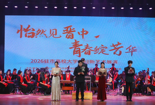 近日,由驻市21所高校、中共晋中市委宣传部、晋中市文化和旅游局、共青团晋中市委联合主办,中共榆次区委、榆次区人民政府等单位承办的“怡然见晋中 青春绽芳华”2026驻市高校大学生迎新艺术展演在晋中大剧院精彩启幕。我校师生应邀全程深度参与,校党委委员、副校长赵娅军出席活动。