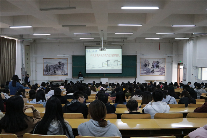 10月25日下午,北京师范大学新闻传播学院执行院长、国务院学位委员会新闻传播学学科评议组成员、博士生导师喻国明教授应邀来我校为师生作了题为“传媒研究的姿态与格局”的专题讲座。