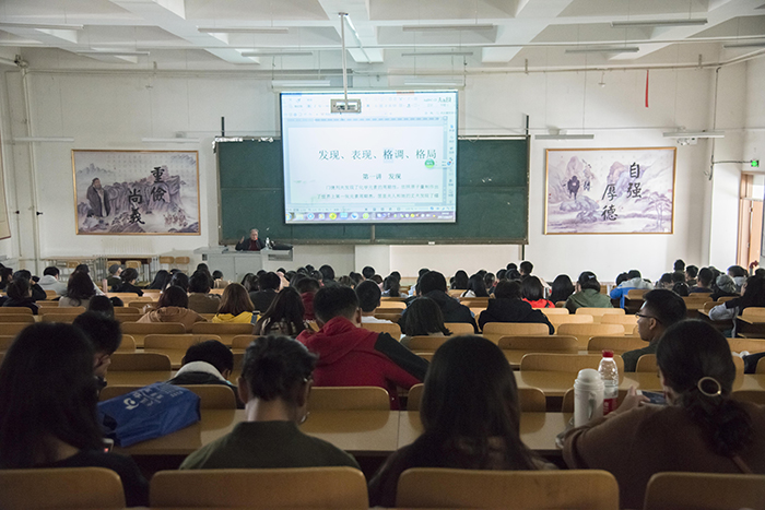 10月27日,山西省电影家协会主席、剧作家杨志刚应新媒体研究所邀请在道德讲堂为我校师生开展了一场生动的“微电影剧作创意”讲学。