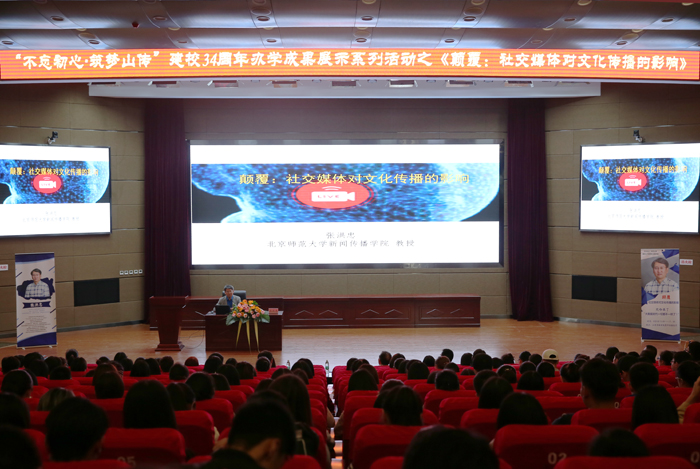 6月6日下午,北京师范大学新闻传播学院副院长、博士生导师张洪忠教授应传媒管理系邀请来校为师生作了题为《颠覆:社交媒体对文化传播的影响》的专题讲座。副校长郭卫东、校领导梁云阶以及各系师生代表参加。讲座由郭卫东副校长主持。