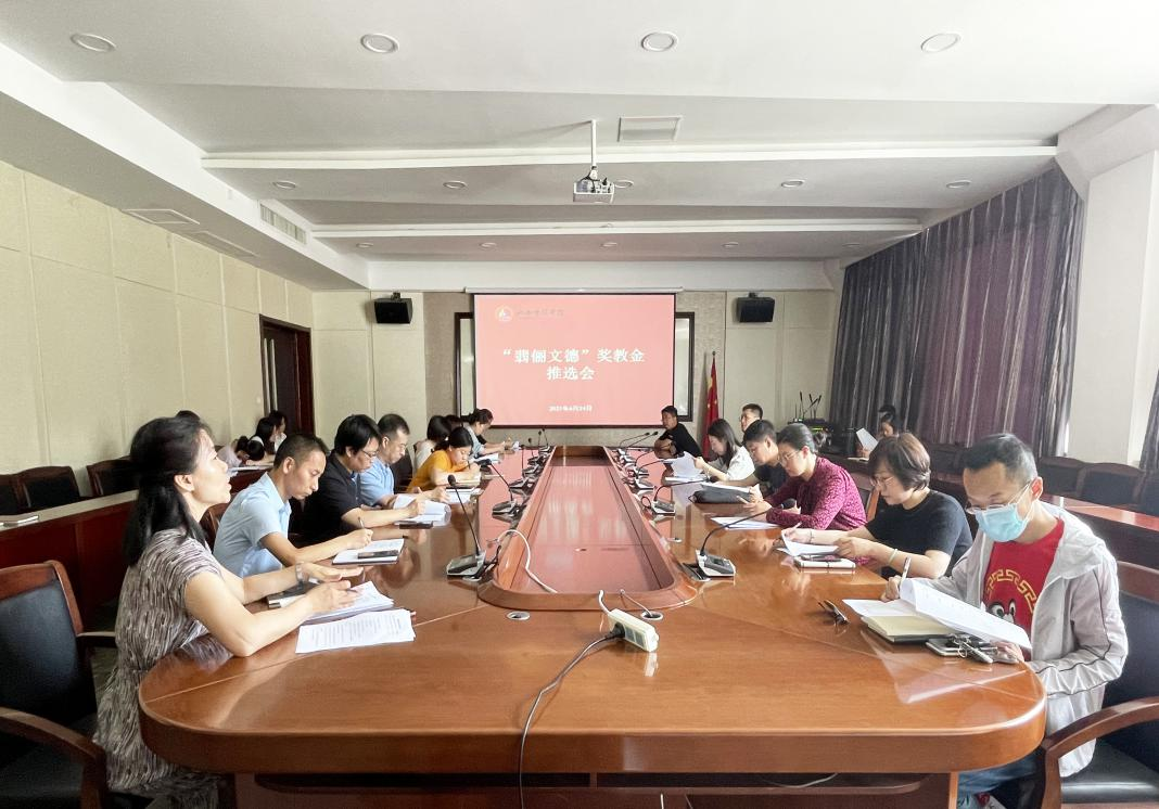 6月24日上午,科研部在第二会议室举行2020年度“翡俪文德”奖教金推选会。参加推选会的人员为各二级学院、部和研究中心的领导1名和教师代表各2名。会议由科研部副部长杨伟主持。