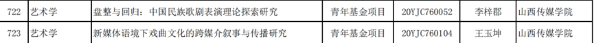经教育部社会科学司公示完成,并于2020年3月20日正式发布的《教育部社科司关于2020年度教育部人文社会科学研究一般项目立项的通知》中,由我校表演学院教师李梓郡担任课题负责人的《盘整与回归:中国民族歌剧表演理论探索研究》以及电影与电视学院教师王玉坤担任课题负责人的《新媒体语境下戏曲文化的跨媒介叙事与传播研究》获得2020年度教育部人文社会科学研究青年基金项目立项。